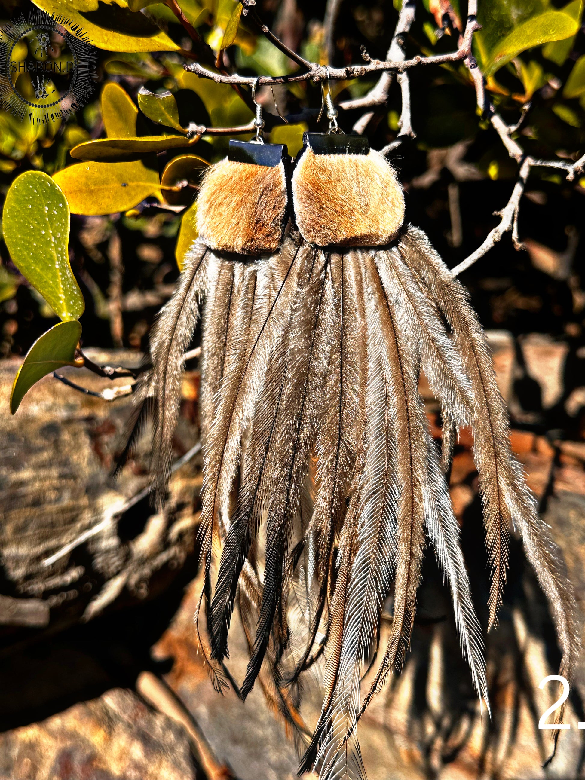Inspired by the spirit of the Australian outback, these stunning earrings celebrate two of Australia's most iconic animals — the red kangaroo and the emu. Rich red kangaroo fur is paired with natural Australian emu feathers to create a bold, earthy design that honours the land and its creatures.